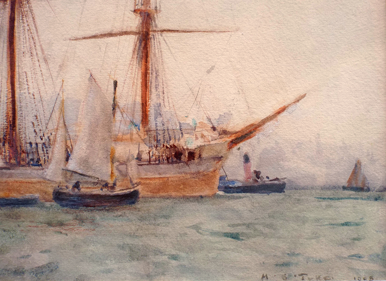 In 1885, Tuke returned to Falmouth where many of his major works were produced. Tuke became an established artist and was elected to full membership of the Royal Academy in 1914. Tuke suffered a heart attack in 1928 and died in March, 1929. Towards the end of his life Tuke knew that his work was no longer fashionable. In his will he left generous amounts of money to some of the men who, as boys, had been his models. Today he is remembered mainly for his oil paintings of young men, but in addition to his achievements as a figurative painter, he was an established maritime artist and produced as many portraits of sailing ships as he did human figures. Tuke was a prolific artist—over 1,300 works are listed and more are still being discovered.