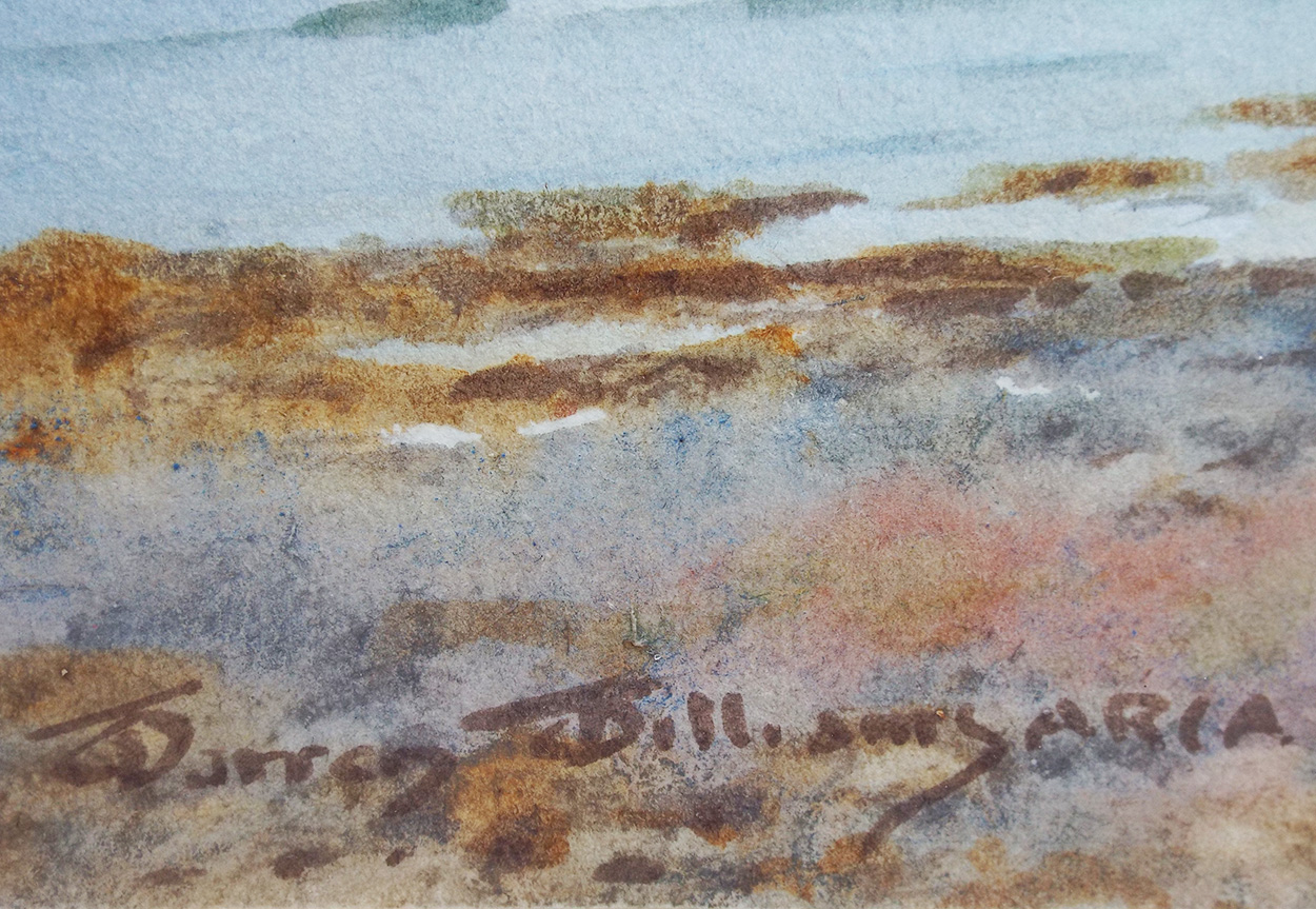 Watercolour signed by the artist, finished with a distressed silver-leaf frame and Tru Vue Museum Glass® which eliminates reflection, blocks up to 99% of harmful UV rays and maintains the colour and quality of the artwork.
