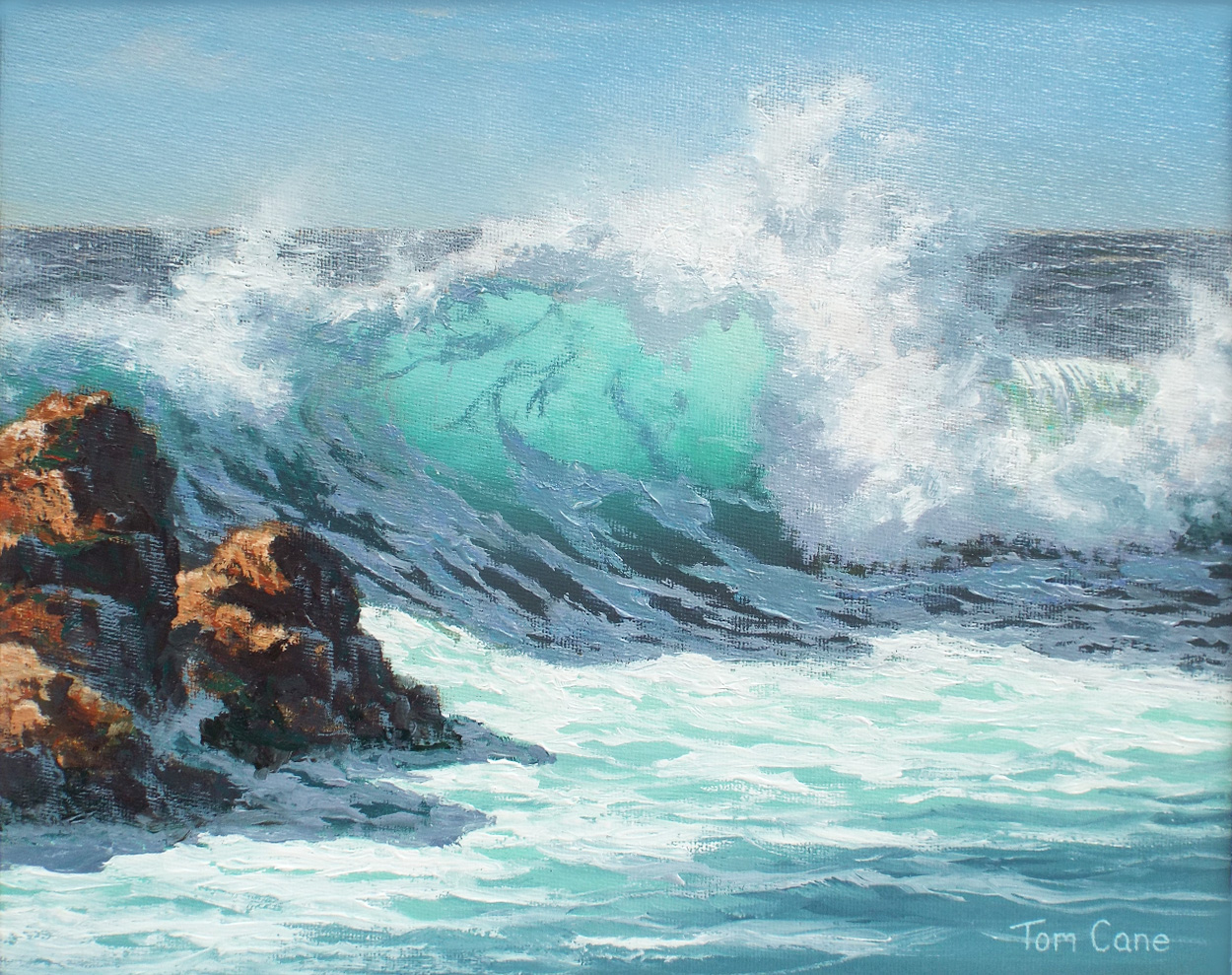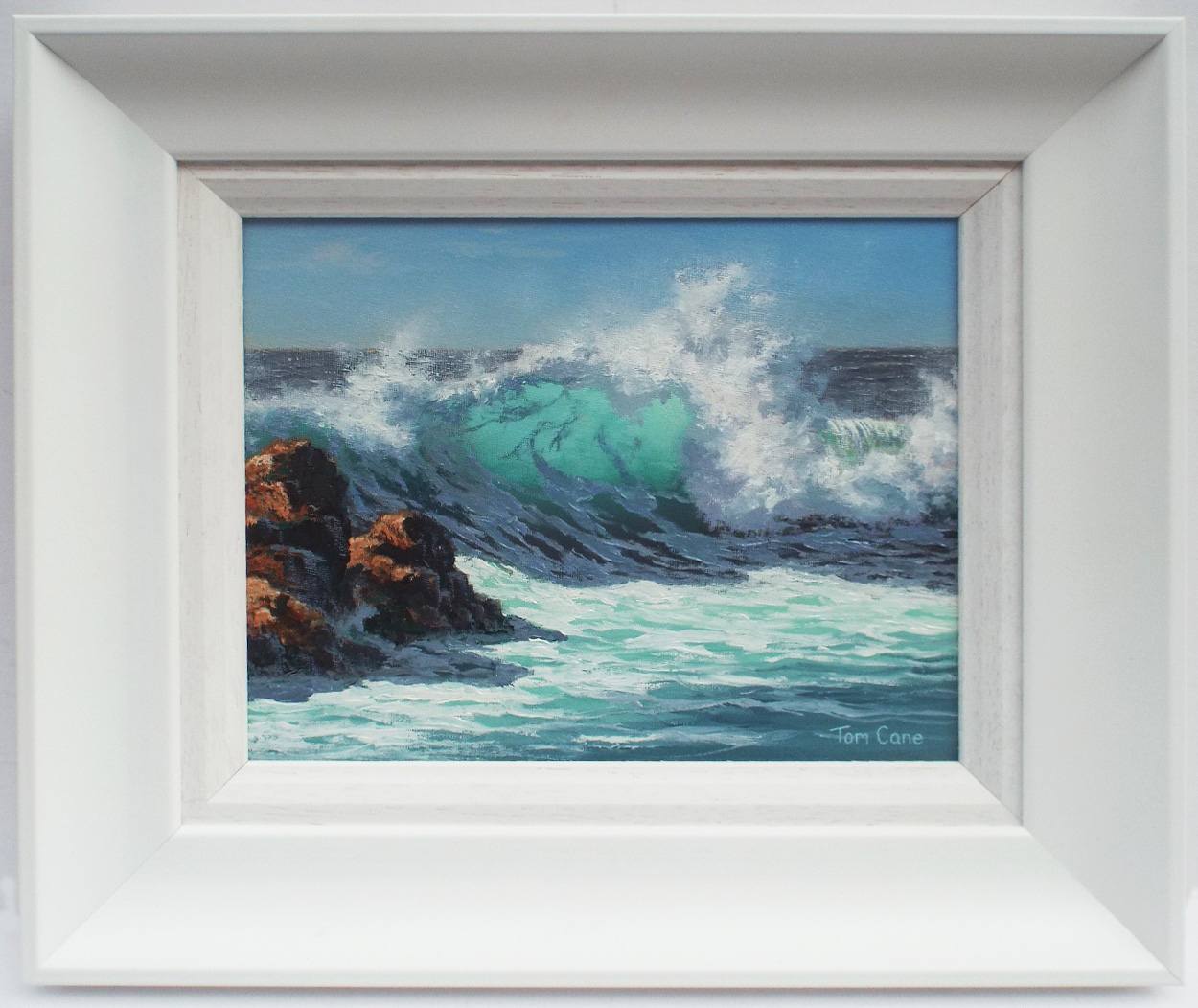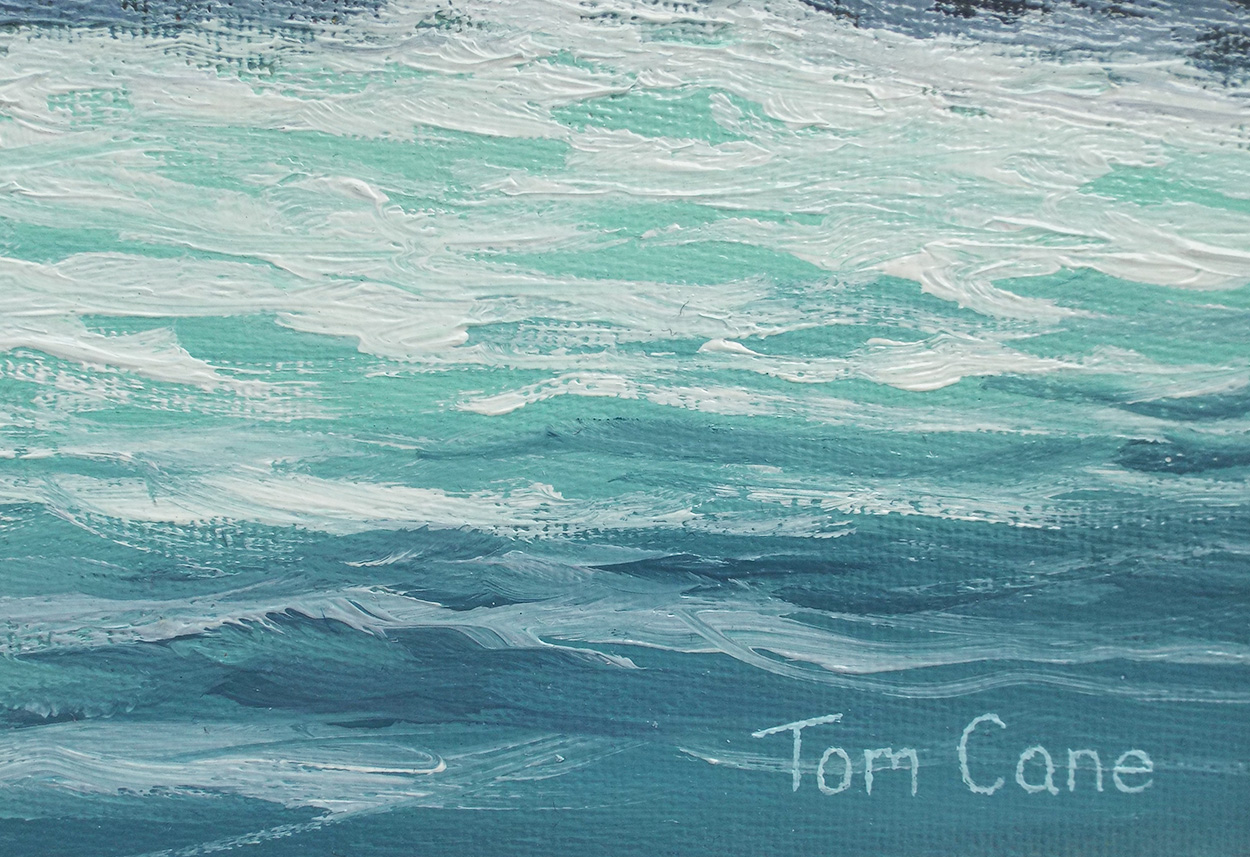 Tom Cane was born in the North East of England in 1971. He exhibited a natural talent for art at a very young age but didn’t begin painting in a professional capacity until the late 1990’s. Cane has previously experimented painting a range of different subject matter, including vintage and rally cars. He now however primarily paints marine scenes, specialising in detailed seascapes, he is able to capture the lively energy of crashing waves with great ease.