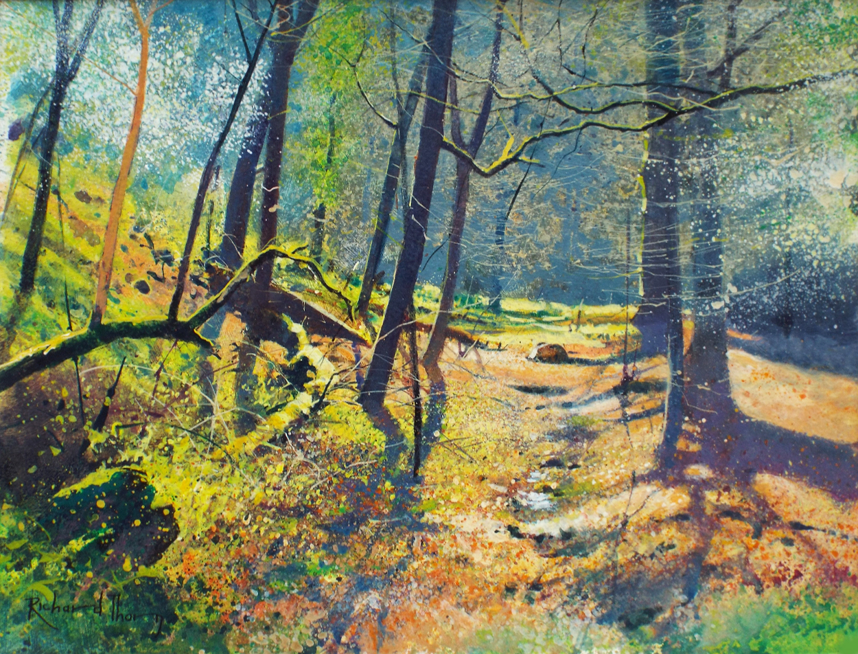 Richard Thorn began his painting career in the early 80’s after a long sojourn in London playing Jazz. Since those early days his paintings have been sold and exhibited in many leading galleries throughout the Southern region as well as America, Taiwan and South Korea.Recently, after having his work accepted for the last 4 years at the Royal Institute (for painters in watercolour) open exhibitions, he has won 2 awards for best watercolour.He was also invited to participate in the Quingdao International Watercolour Exhibition 2019 where he won an excellent work award. Art Promoters in China are currently showing his work and have asked the artist to return in 2020 to demonstrate and exhibit. Light, texture and distance are his principal concerns. These elements predominate his subject matter. There is a constant search for new techniques toward those goals. “For me, painting is a continuum – an exploration. But watercolour is a medium that seems to be always one step ahead”
