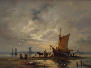 Fishing Boats Off The Coast In Calm Waters 1855 (Pair)